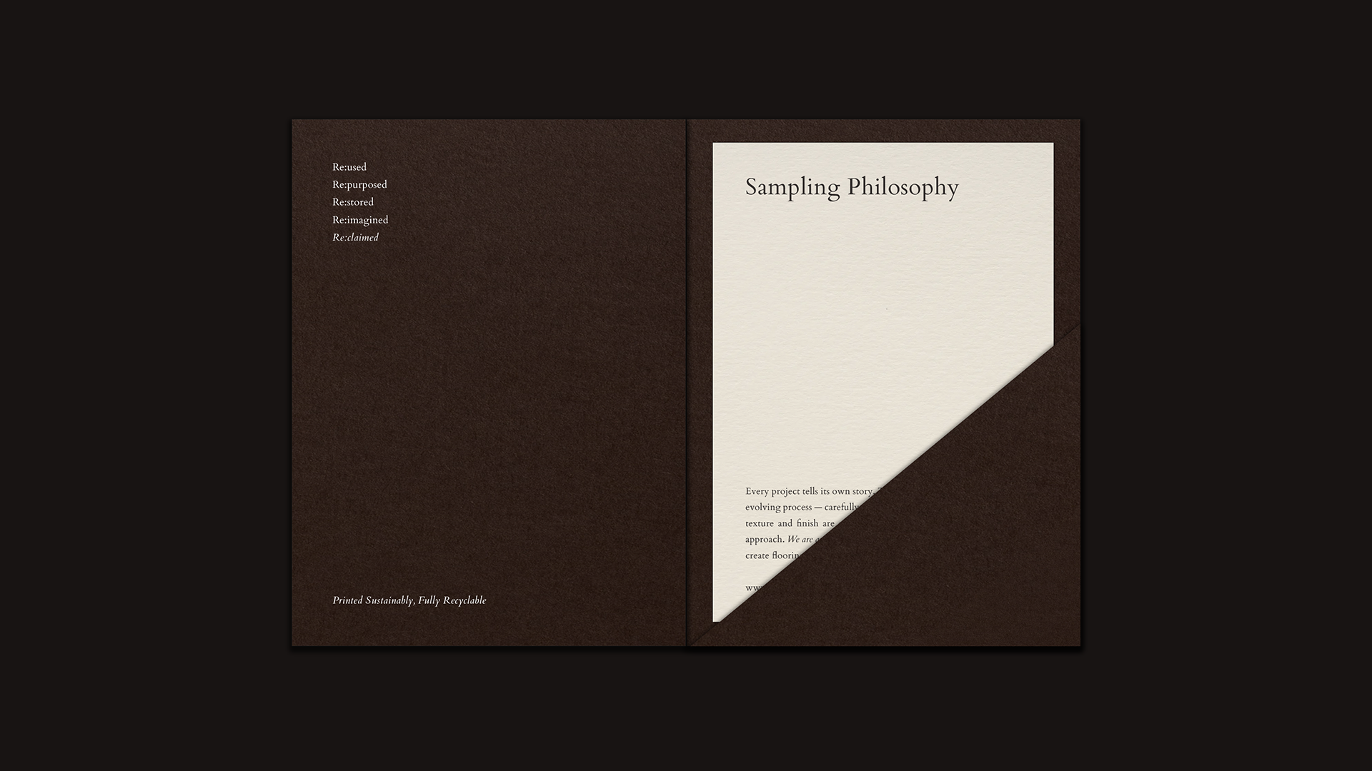 In this system, language becomes part of the identity, not as ornament but as conversation, echoing the brand’s ethos of recovering, rethinking, and reworking materials with intention. The repetition of re: feels rhythmic and purposeful — a visual articulation of ideas that have agency in themselves. Through this motion language the brand shifts perception from product to proposition. No longer presented as just a flooring company, Re:claimed stands as a thoughtful curator of materials and mindset. The animated cues foreground ideas — re:newal, re:connection, re:purpose — so that the brand’s philosophical values are present before its products, and that each expression feels grounded in material language and legacy.